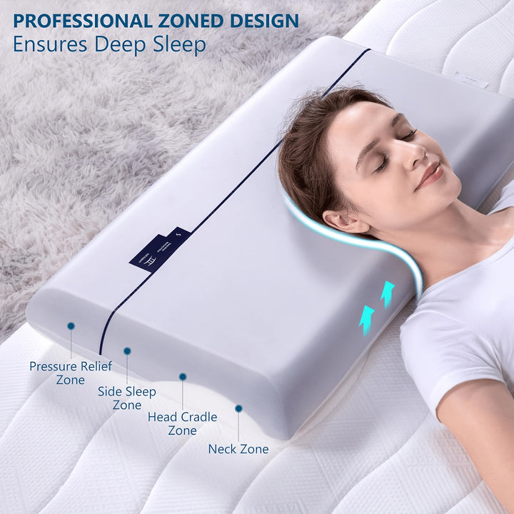 Memory Foam Pillows, Cervical Neck Pillow for Neck Pain Relief, Soft and Cooling for Back Side Sleeper Pillow with Two-Sided Reversible, Fits The Face Perfectly, Home Bed Pillows