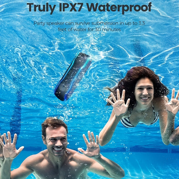 Portable Wireless Speaker, IPX7 Waterproof Wireless Speaker with Colorful Flashing Lights, 25W Super Bass 24H Playtime, 100ft Range, TWS Pairing for Outdoor, Home, Party, Beach, Travel