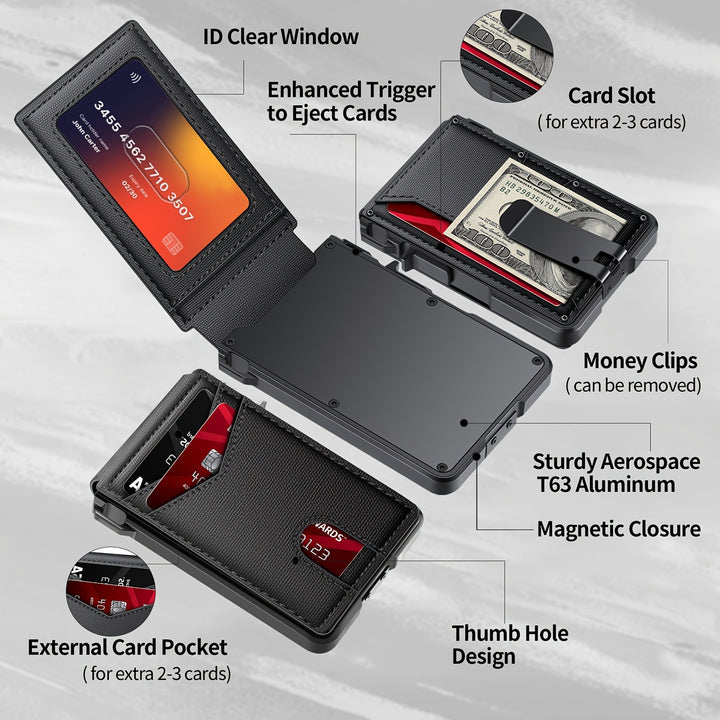 RFID Blocking Dual-Fold Tactical Wallet for Men - Slim Minimalist Aluminum Alloy Card Case with PU Leather, Pop-Up Card Holder, and External Card Pocket - Business Style