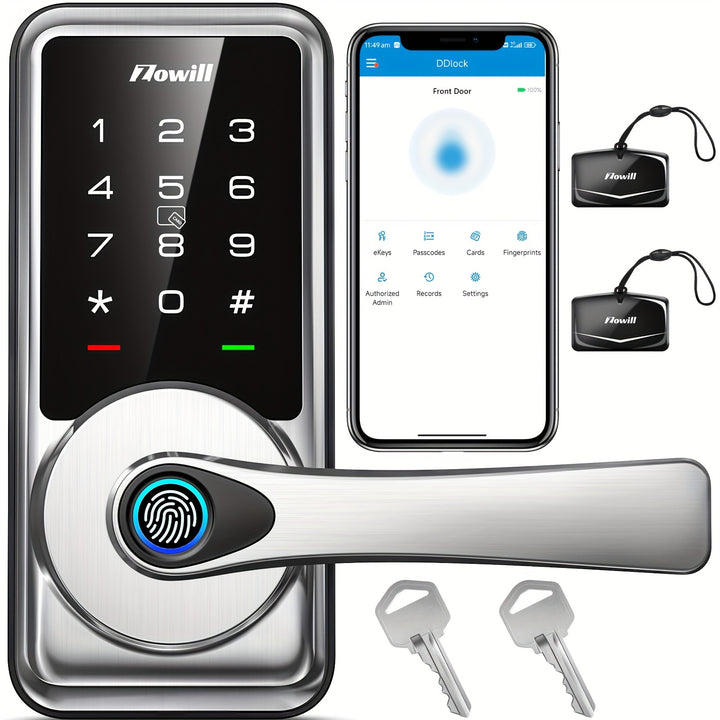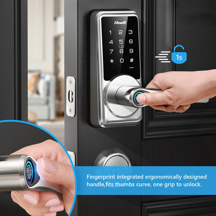 Smart Keyless Entry Door Lock with Handle - Biometric Fingerprint Deadbolt, App Control, Auto Lock, Easy Installation, Wireless Enabled, Non-Rechargeable AA Battery Powered